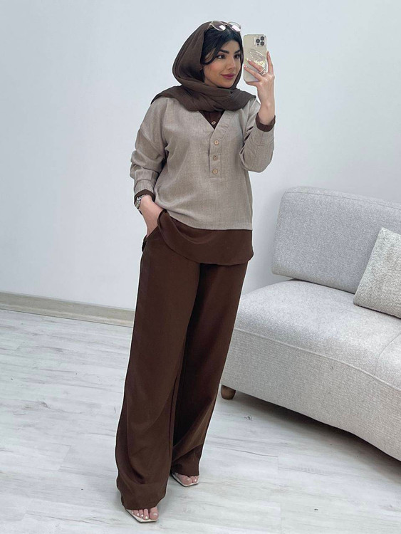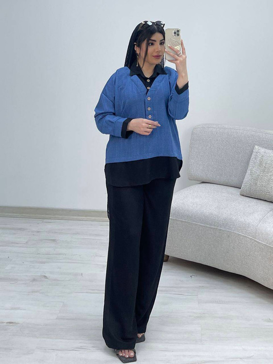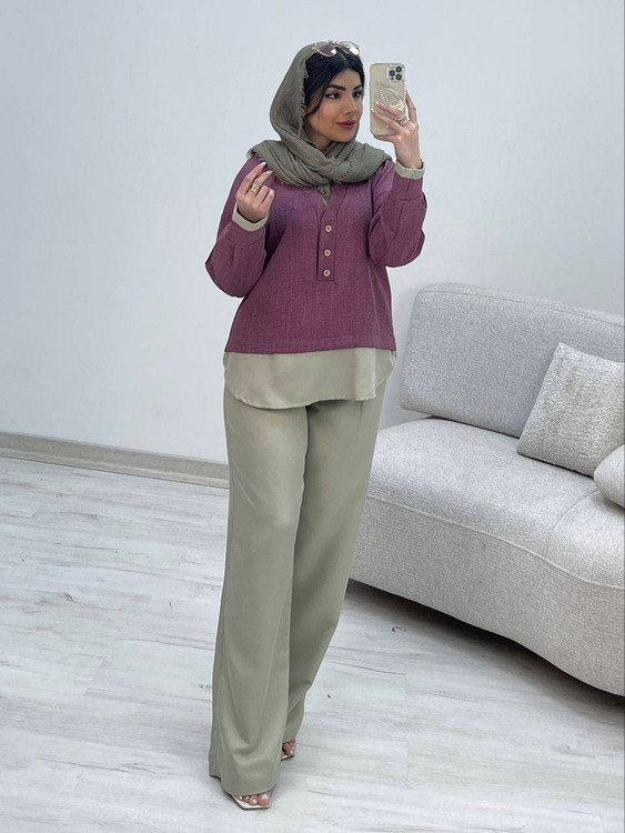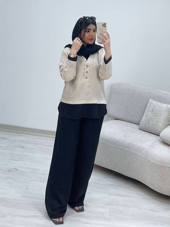 قدشومیز حدودا ۶۷،قداستین از یقه۷۰،دوربازو۴۴،دورسینه۱۲۰/قدشلوار۱۰۶،دورران۶۸،دمپا۵۴