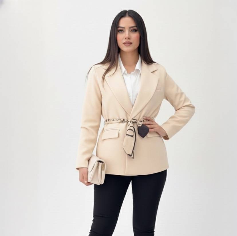 با ترندترین کت سال، استایل خود را به سطح جدیدی ببرید! این کت با طراحی منحصربهفرد و کمربند باندانا ساتن، انتخابی ایدهآل برای خانمهای شیکپوش و خاصپسند است.