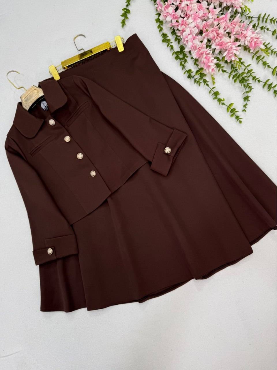 اگر به دنبال استایلی هستید که در عین سادگی، شکوه و اصالت شما را به نمایش بگذارد، کت و دامن پریماه انتخابی بینظیر است. این ست با طراحی دقیق و استفاده از پارچه مرغوب مازراتی، برای بانوانی طراحی شده که به جزئیات اهمیت میدهند.