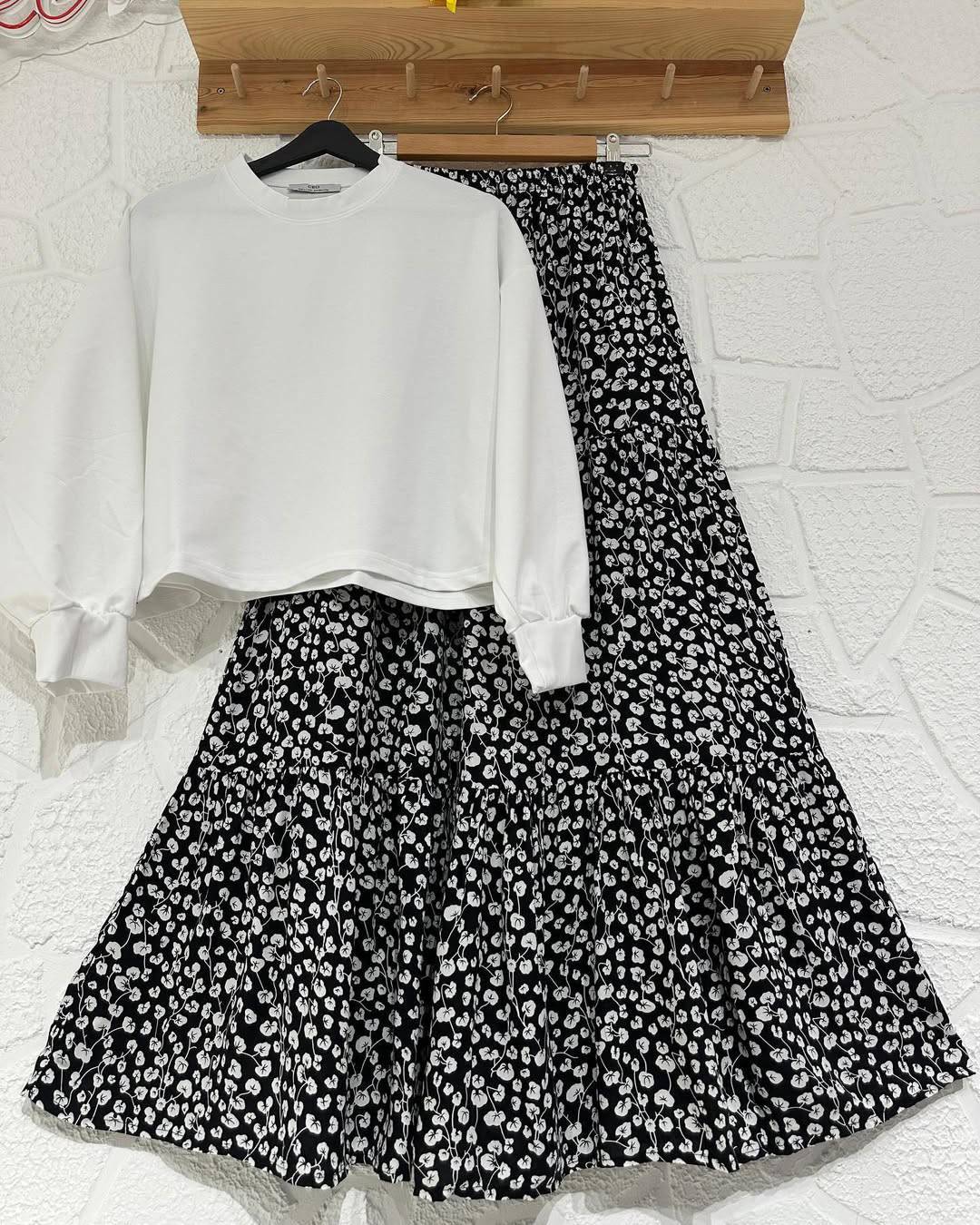 خرید ست شومیز دامن مستانه N جنس بوگاتی مزونی شیک آروما فشن مشکی