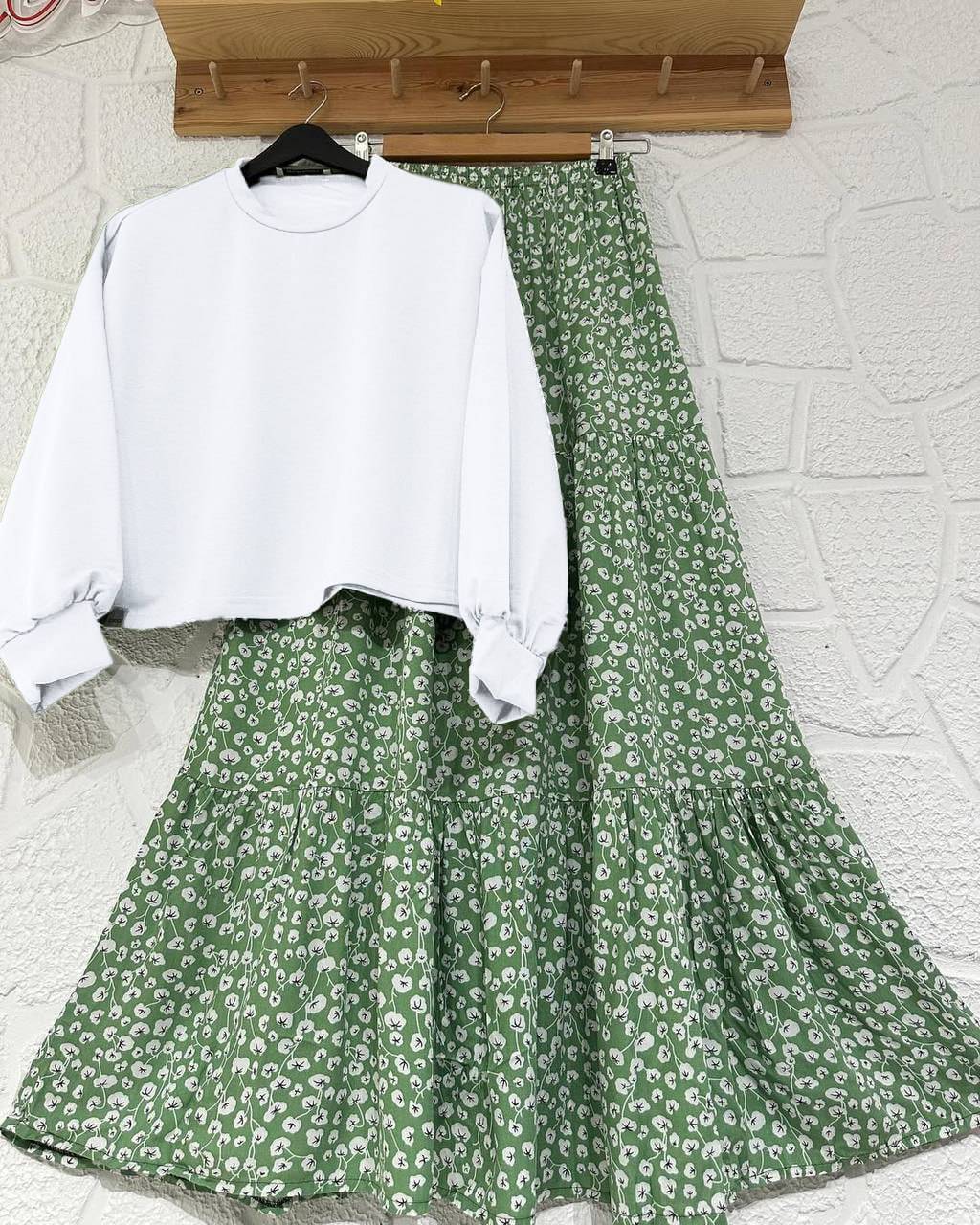 خرید ست شومیز دامن مستانه N جنس بوگاتی مزونی شیک آروما فشن سبز