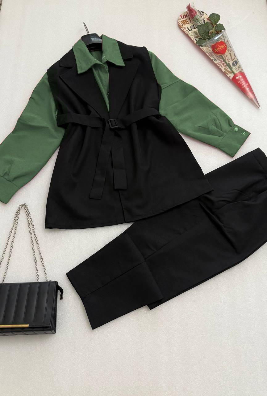 اگه دنبال یه ست کامل و شیک هستی که همه چیز رو یکجا داشته باشه، ست چهارتیکه سامیتا F (شومیز، وست، شلوار و کمربند) بهترین انتخابه!