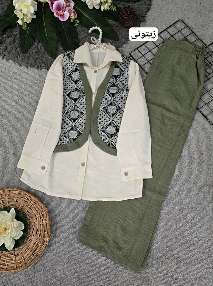 ست شومیز لنین و جلیقه خامه دوزی مدل سلما H
