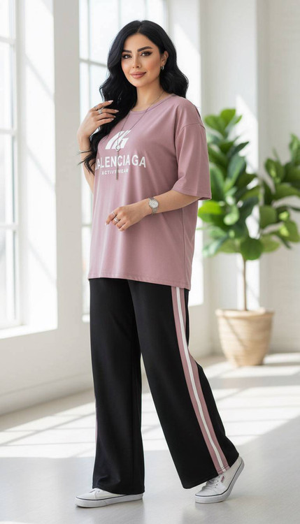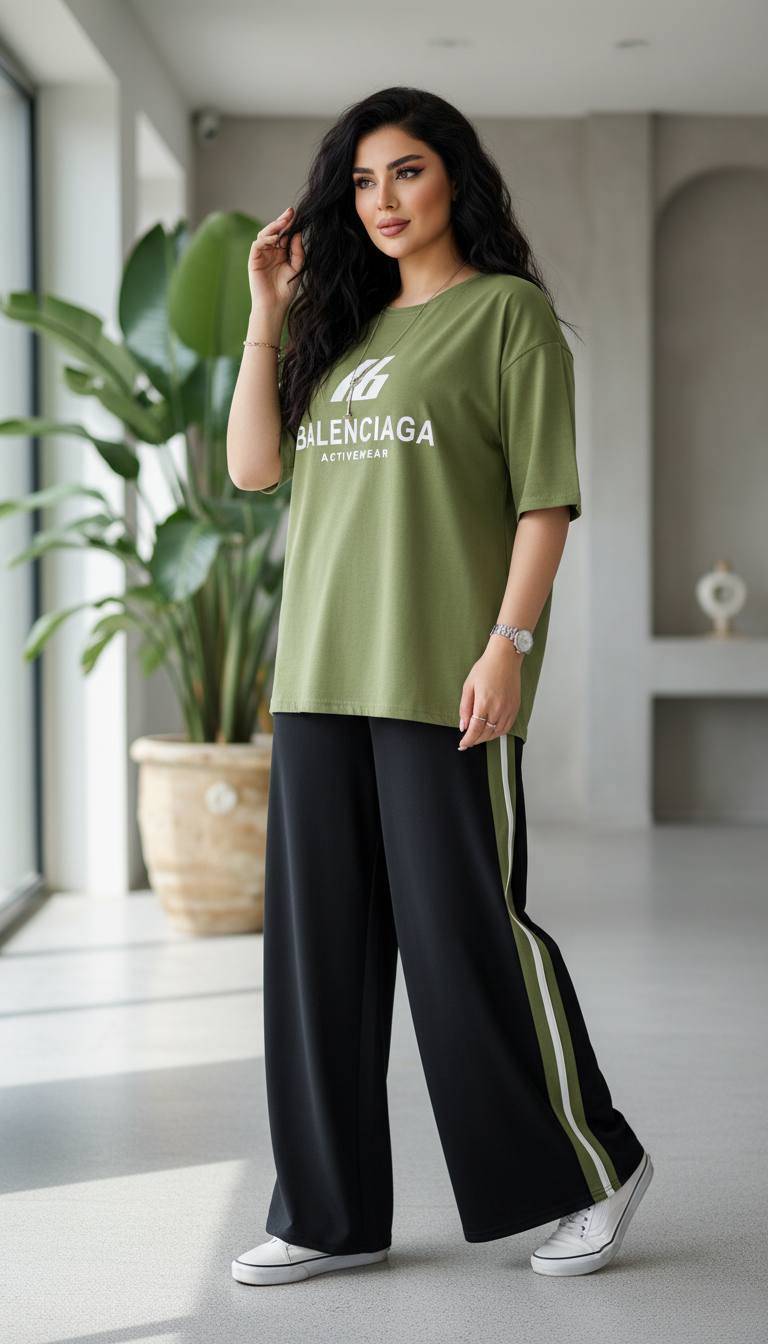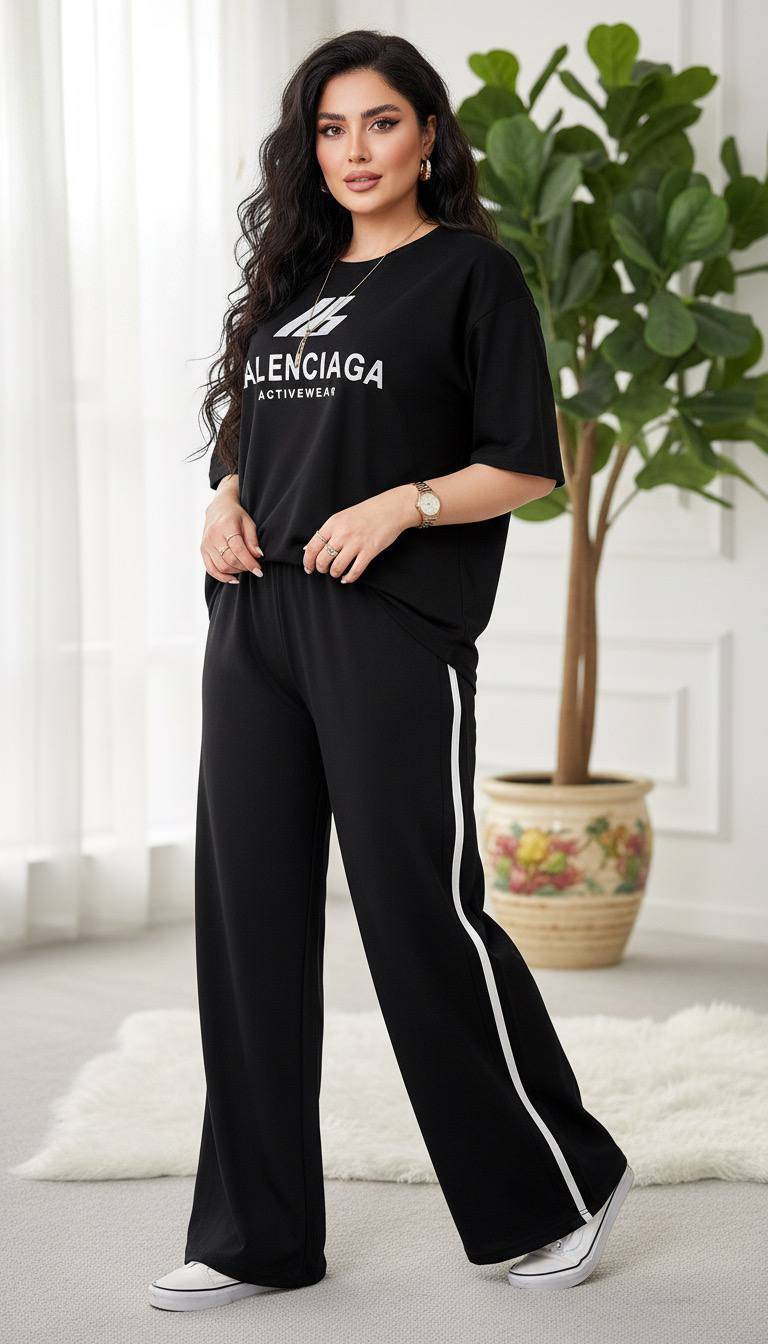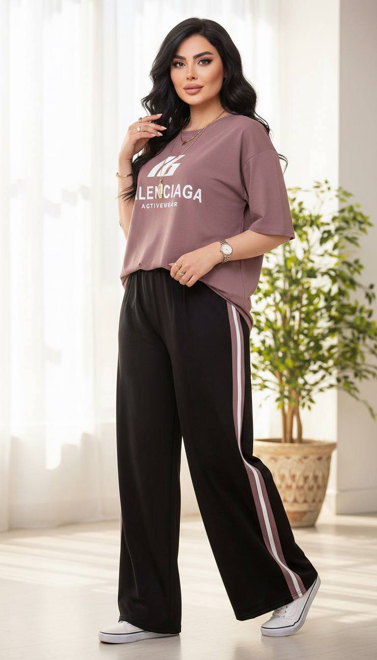 ست دو تیکه بالینسیاگا یکی از ترندترین و پرفروشترین ستهای فصل هست که با ترکیب تیشرت اورسایز و شلوار بگ، استایلی مدرن و راحت رو ارائه میده. پارچه گلکسی نخ پنبه درجه یک، علاوه بر لطافت و نرمی فوقالعاده، ضد حساسیت و مناسب پوستهای حساس هم هست.