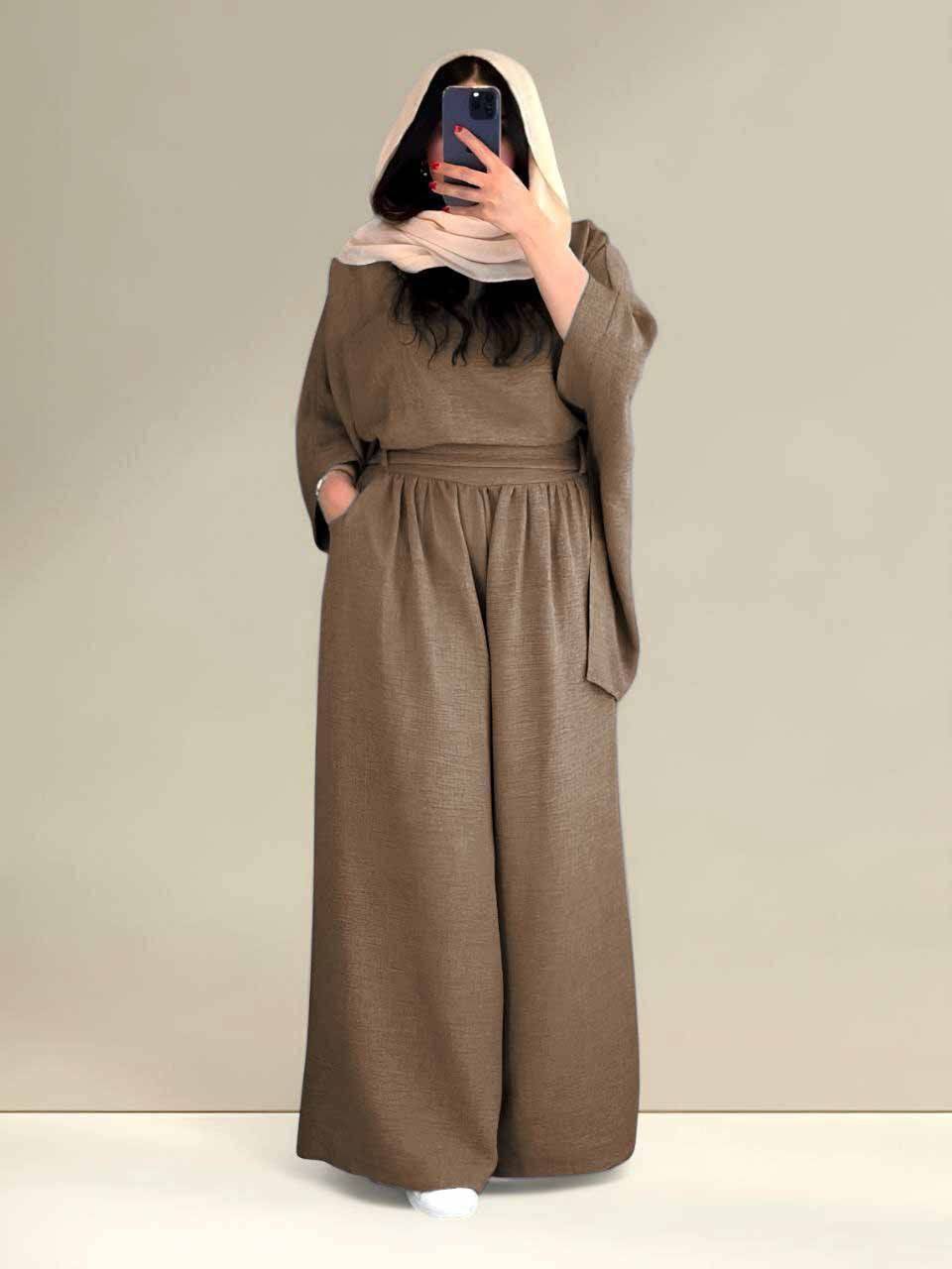 🔹 راحتی بینظیر: بلوز با آستین بلند و شلوار بگ با کمربند، راحتی فوقالعادهای رو برای استفاده روزانه فراهم میکنه.