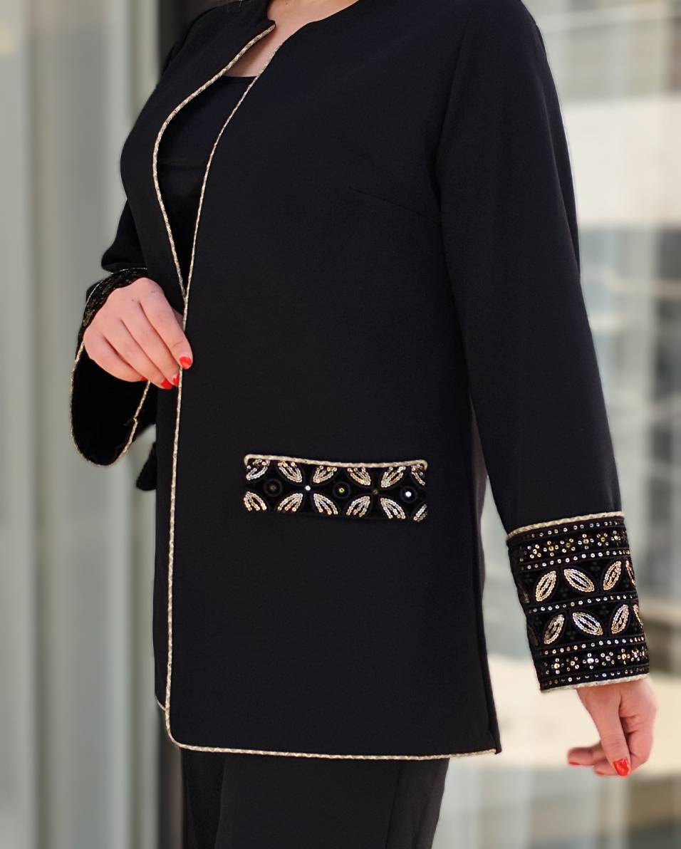 یه کت و شلوار مجلسی خوب سرمایه کمد هر خانمیه! عروسی، مهمانی رسمی، جلسه کاری، مراسم خاص — هر جا بخوای شیک، حرفهای و باوقار به نظر برسی، این ست بهترین انتخابه. سوزندوزی هندی و مخمل خرجکارش تو رو از بقیه متمایز میکنه!