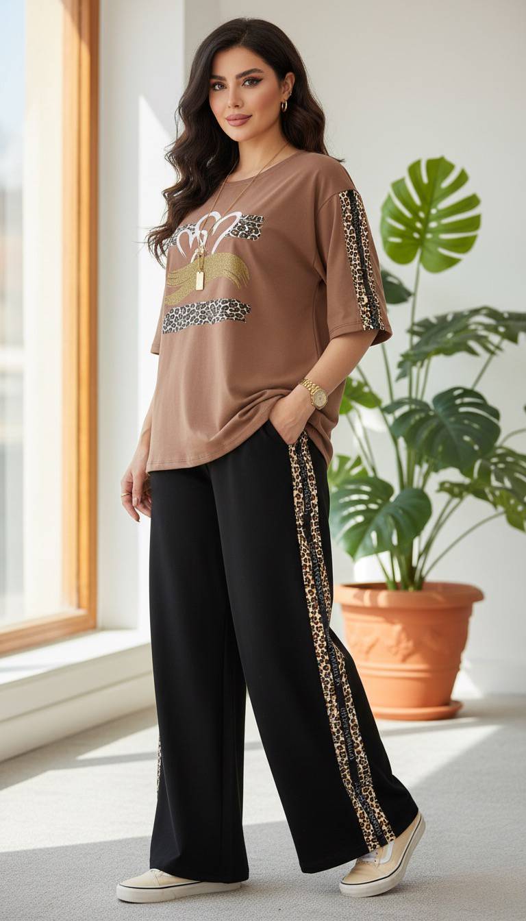 🌟 معرفی تیشرت شلوار شاین پلنگی F از آروما فشن