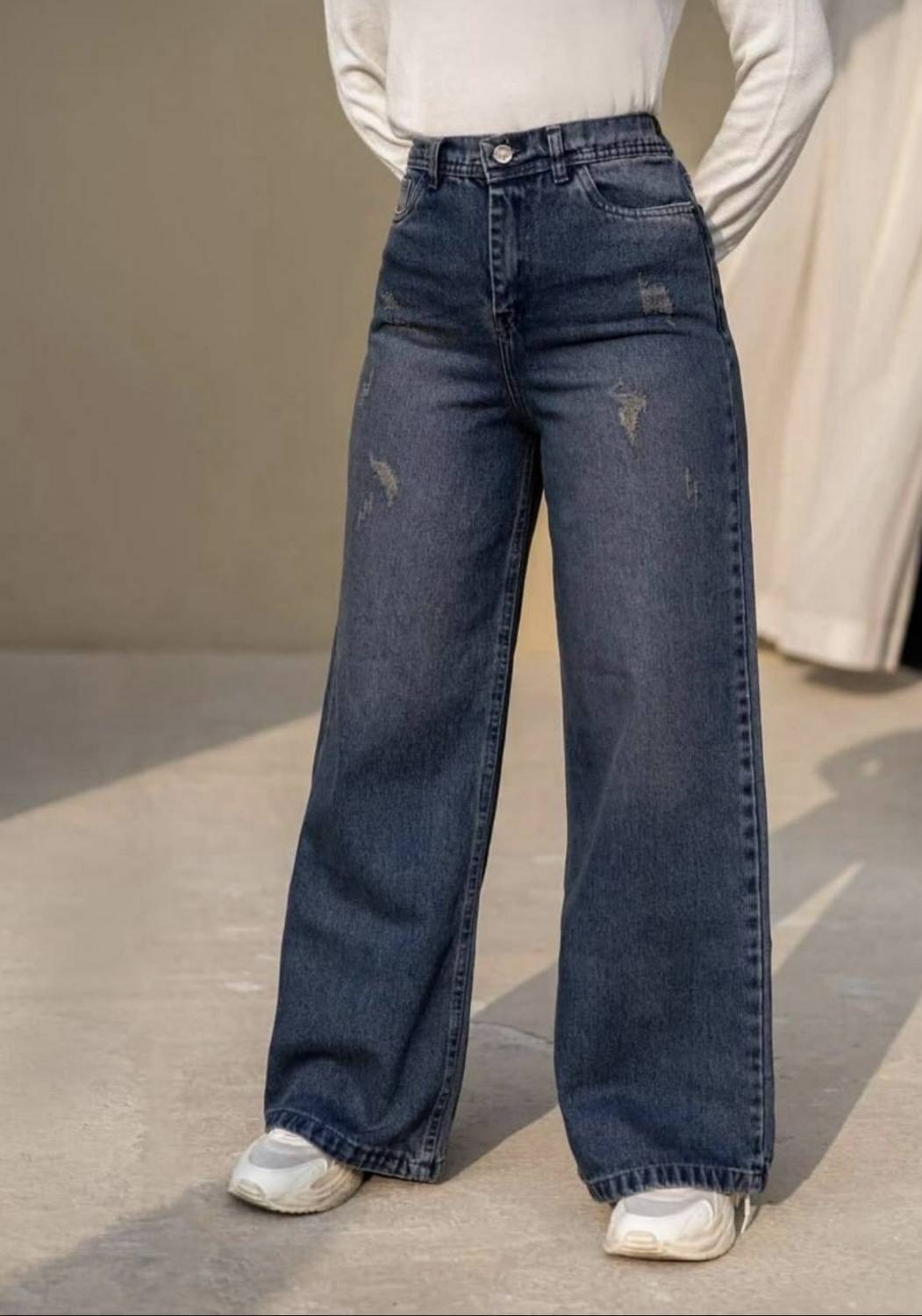 شلوار جین بگ ژوبین زنانه آبی تیره با طراحی گشاد و مدرن - خرید آنلاین از آروما فشن