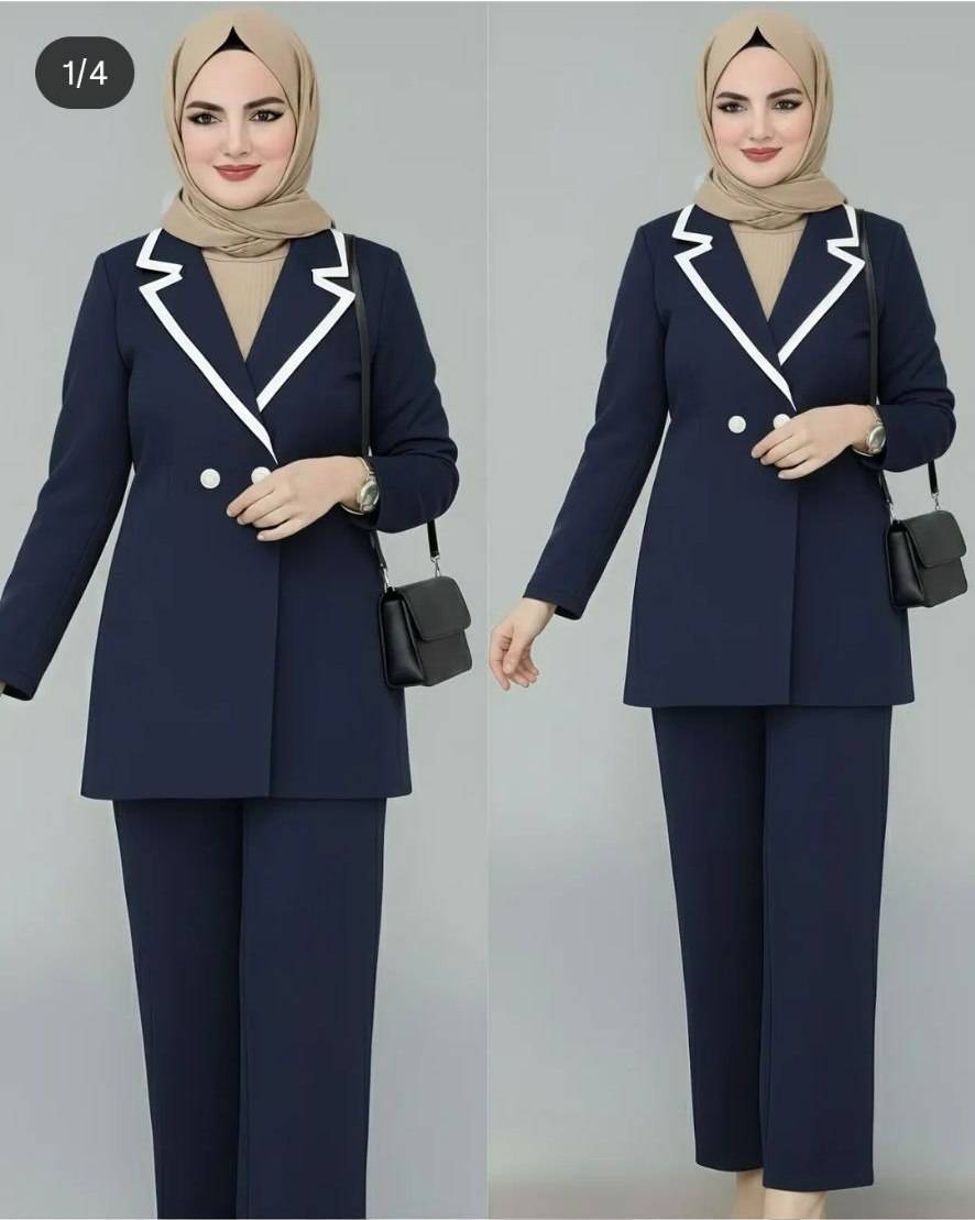 نمای کامل کت و شلوار قلبی زنانه رنگ سورمه ای با پارچه مازراتی شیک آروما فشن 👗✨