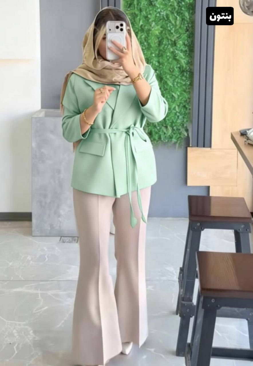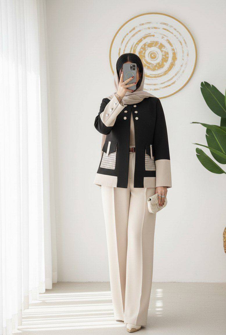 کت شلوار ترکیبی هیوا زنانه با جنس مازراتی کره‌ای اصل لایی‌کوبی شده
